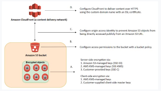 - Amazon S3 will encrypt each object with a unique key and as an additional safeguard, it encrypts the key itself with a master key that it rotates regularly.